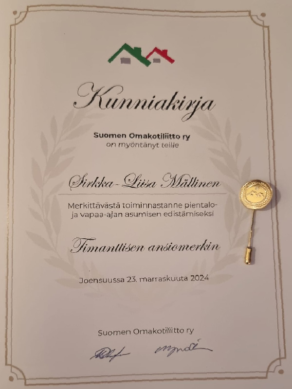 Vuoden omakotiasukkaaksi valittiin yhteisöllisyyden puolestapuhuja Sirkka-Liisa Mällinen Keminmaalta